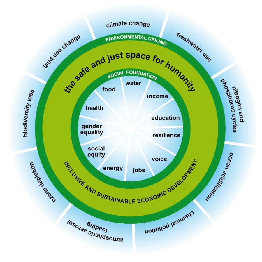 Het doel is om een economische werkelijkheid te creëren waarbij iedereen toegang heeft tot een sociaal fundament zoals energie, voedsel, onderwijs en politieke inspraak. Maar zonder dat we over ons ecologisch plafond heen gaan. Raworth doet een beroep op de creativiteit en betrokkenheid van burgers, ondernemers en overheden om duurzame ondernemingen op te starten. En om daar te komen, zijn er 7 stappen nodig die een economie creëren die past bij de 21ste eeuw. Bijvoorbeeld door de focus op groei, te weerleggen naar een focus op bloei. Door ons te richten op herverdeling van grondstoffen, een circulaire economie.